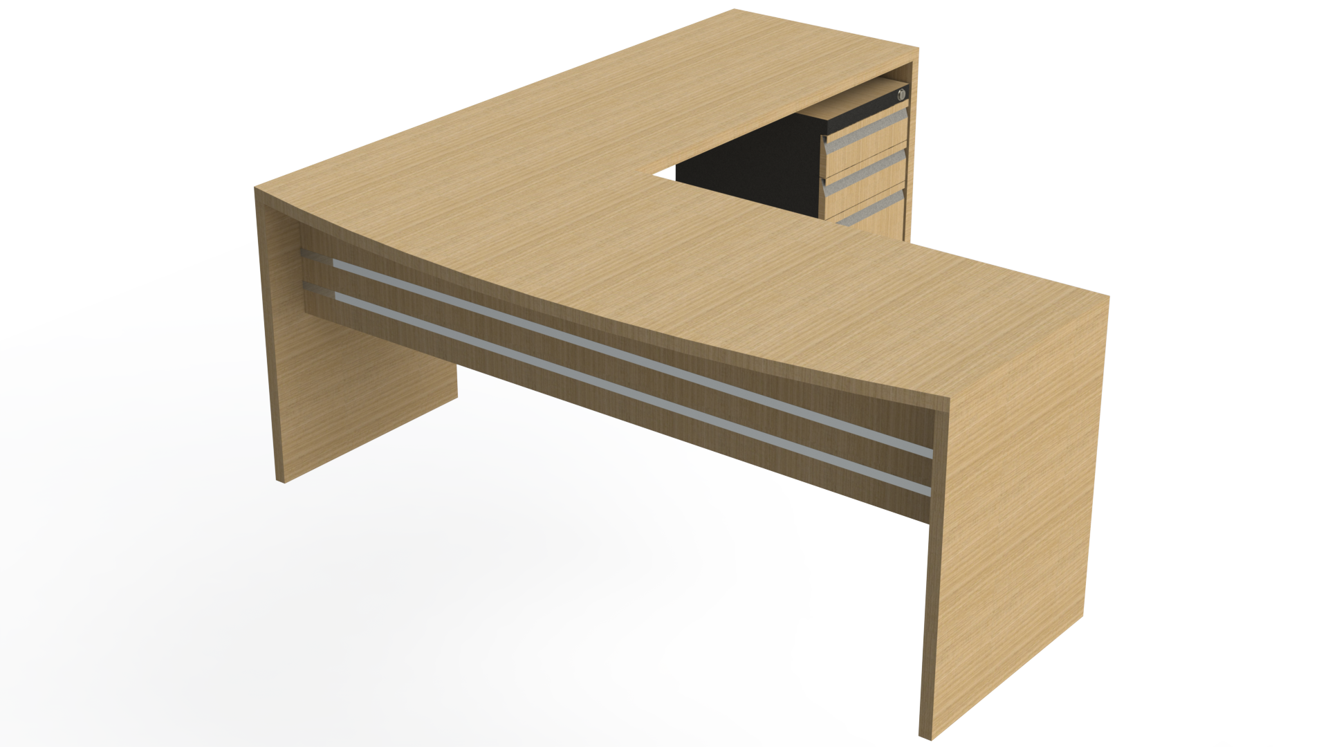 Superficie en tablex entamborado de 30mm, enchapadas en formica F8 en colores planos o texturizados. Archivador mini con frentes en tablex de 15mm, enchapado en formica en colores planos o texturizados.