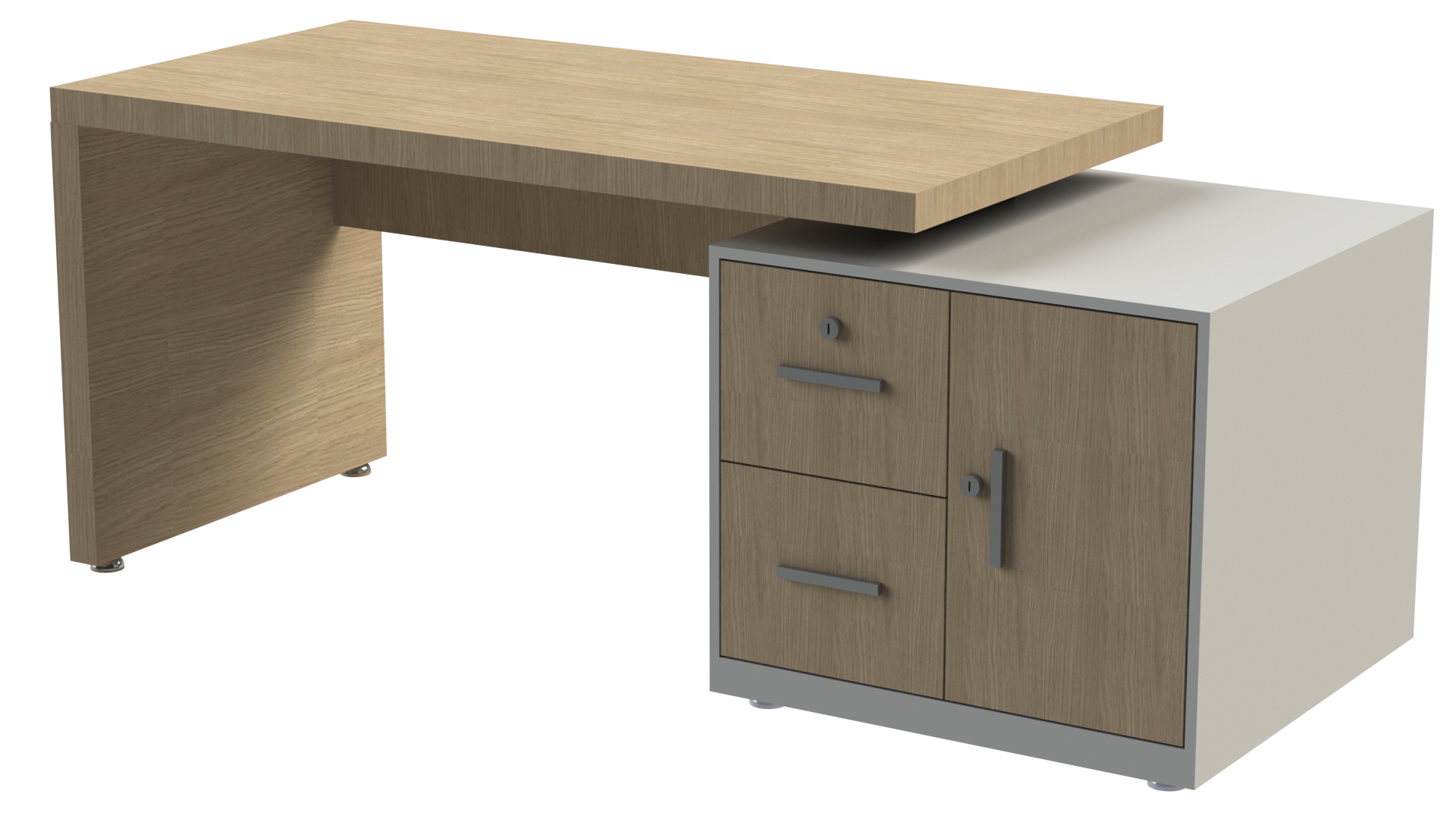Superficie en tablex entamborado de 30mm, enchapadas en formica F8 en colores planos o texturizados. Archivador tipo biblioteca en aglomerado enchapado en formica en colores planos o texturizados. (corta)