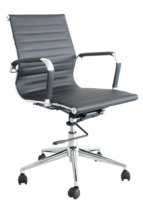 La silla Boss está disponible en versiones con espaldar medio o alto. Su espaldar y asiento están tapizados en cuero sintético, complementados por un marco cromado que realza su apariencia profesional. Los brazos cromados fijos con cobertor en cuero sintético añaden confort y elegancia. Incluye un mecanismo basculante con 1 posición de bloqueo y perilla de tensión, además de una base cromada de 320 mm y ruedas de goma para un desplazamiento fluido. Consulta con nosotros todas las variables que cada referencia de silla tiene y se adapte a tu necesidad.