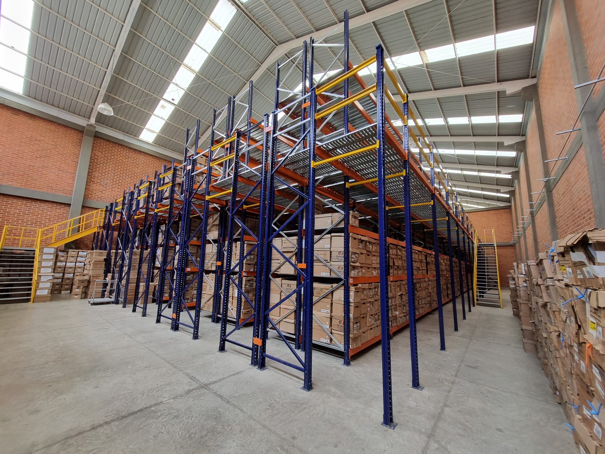 Tipo de sistema de almacenamiento utilizado en almacenes y bodegas para organizar y almacenar productos de manera eficiente. Consiste en una serie de estantes o niveles que permiten el acceso directo a cada paleta o unidad de carga almacenada. Entre estos podemos mencionar la Estantería Selectica, Drive-In, Pasillos Elevados y Mezzanine