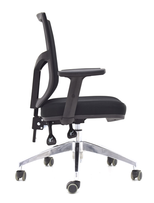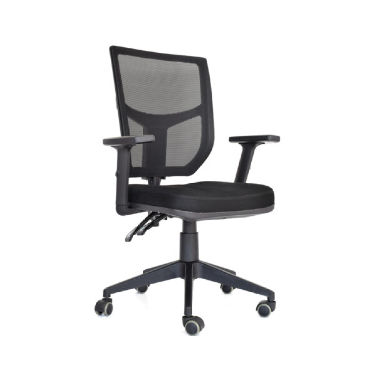 Silla giratoria con espaldar en malla, brazos regulables en altura, asiento de espuma laminada con tapizado textil, mecanismo LAP 2 palancas, base cromada 320mm, ruedas en goma (PU) 50 mm / Color: Negro. Consulta con nosotros todas las variables que cada referencia de silla tiene y se adapte a tu necesidad.