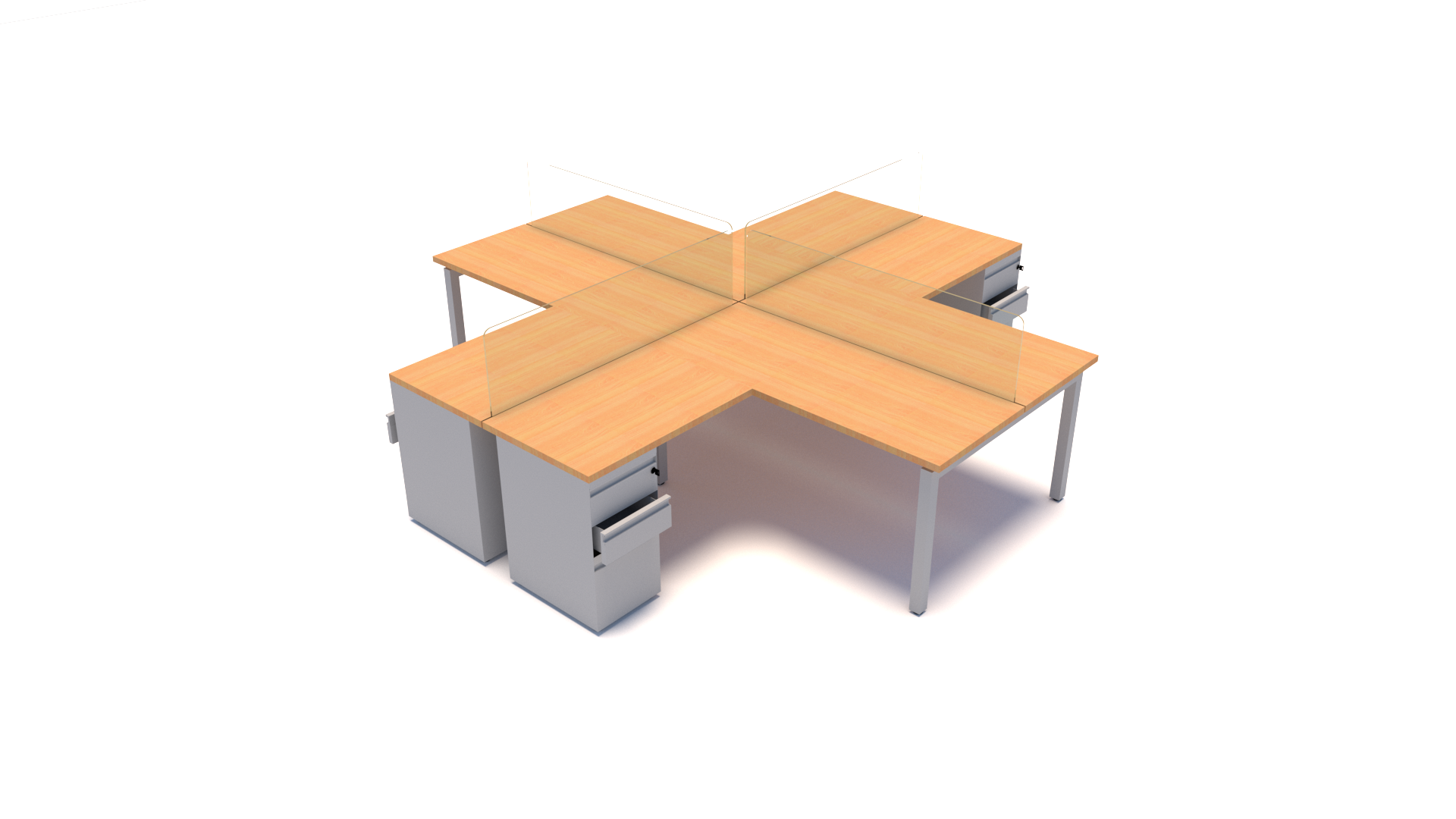 Mueble tipo isla de trabajo o coworking en L de diferentes medidas y adaptado a cada necesidad. Incluye superficies de 30 mm enchapas en formica con medida minima de 1,50×1,50, vidrios lamminados tanto frontales como laterales de diferentes colores a elegir, archivadores metálicos 2×1, canaleta inferior para el cableado, patas en lamina cold rolled tipo U, incluye tapa pasacable / marco power dock con porta tomas para voz y datos, No incluye cableado electrico. Los acabados y combinaciones de color se eligen a partir de la aprobación del proyecto.