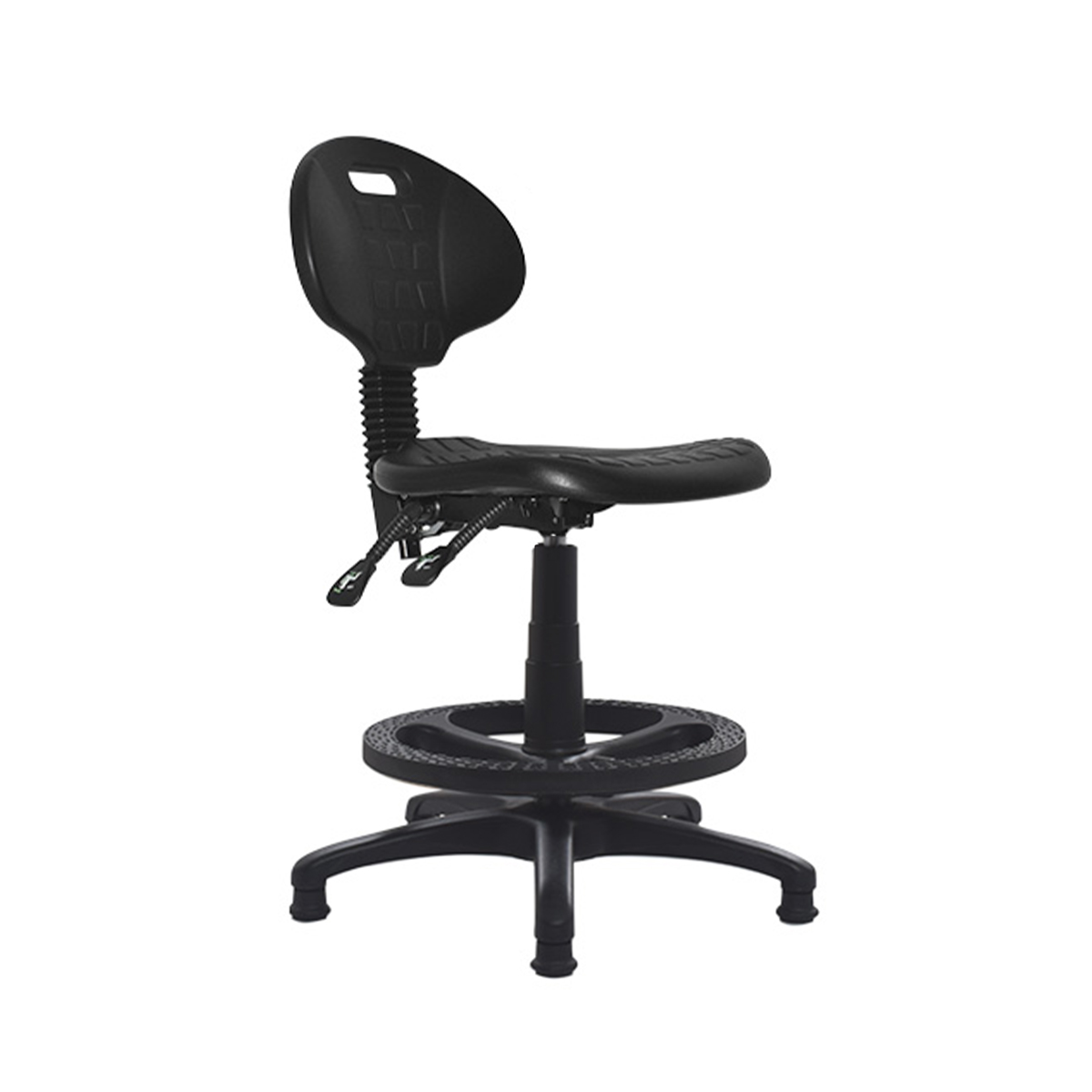 La silla Twig está fabricada con espaldar y asiento en poliuretano, resistente y fácil de mantener, ofrece un mecanismo de elevación de altura con opciones secretariales o cajero. Su base de nylon puede configurarse con ruedas o niveladores, según el uso requerido. Las versiones para cajero incluyen aro de nylon, con la posibilidad de cambio a aro cromado. Twig es ideal para talleres, laboratorios y espacios industriales. Consulta con nosotros todas las variables que cada referencia de silla tiene y se adapte a tu necesidad.